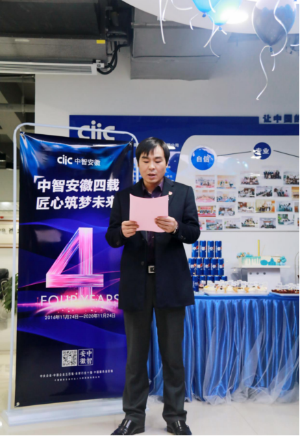 四年前的今天,中智安徽經(jīng)濟(jì)技術(shù)合作有限公司成立。四年后的今天,安徽公司迎來(lái)了它的四周歲。為慶祝這一特殊的日子,11月24日,中智安徽公司舉辦了四周年司慶暨“中智安徽四載·匠心筑夢(mèng)未來(lái)”主題活動(dòng)?;顒?dòng)現(xiàn)場(chǎng)還邀請(qǐng)了中智合肥人力資源產(chǎn)業(yè)園黨支部書(shū)記、副總經(jīng)理周虎蒞臨參與。