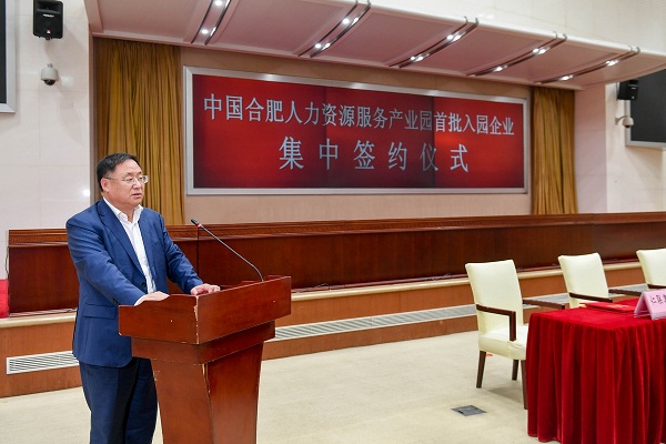 2019年4月12日,中智公司黨委書(shū)記、董事長(zhǎng)卜玉龍一行出席中國(guó)合肥人力資源服務(wù)產(chǎn)業(yè)園首批入園企業(yè)集中簽約儀式。